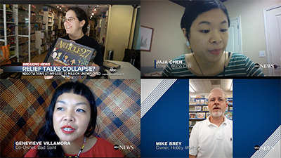 Watch now »On August 8, four Small Business Majority network members, Genevieve Villamora, co-owner of Bad Saint in DC, Mike Brey, owner of Hobby Works in Maryland, Jaja Chen, owner of Waco Cha in Texas, and Kathleen Donahue, owner of Labyrinth Games and Puzzles in DC, spoke with ABC News about the ongoing challenges their businesses are facing and how additional assistance is needed to survive and recover from the pandemic.